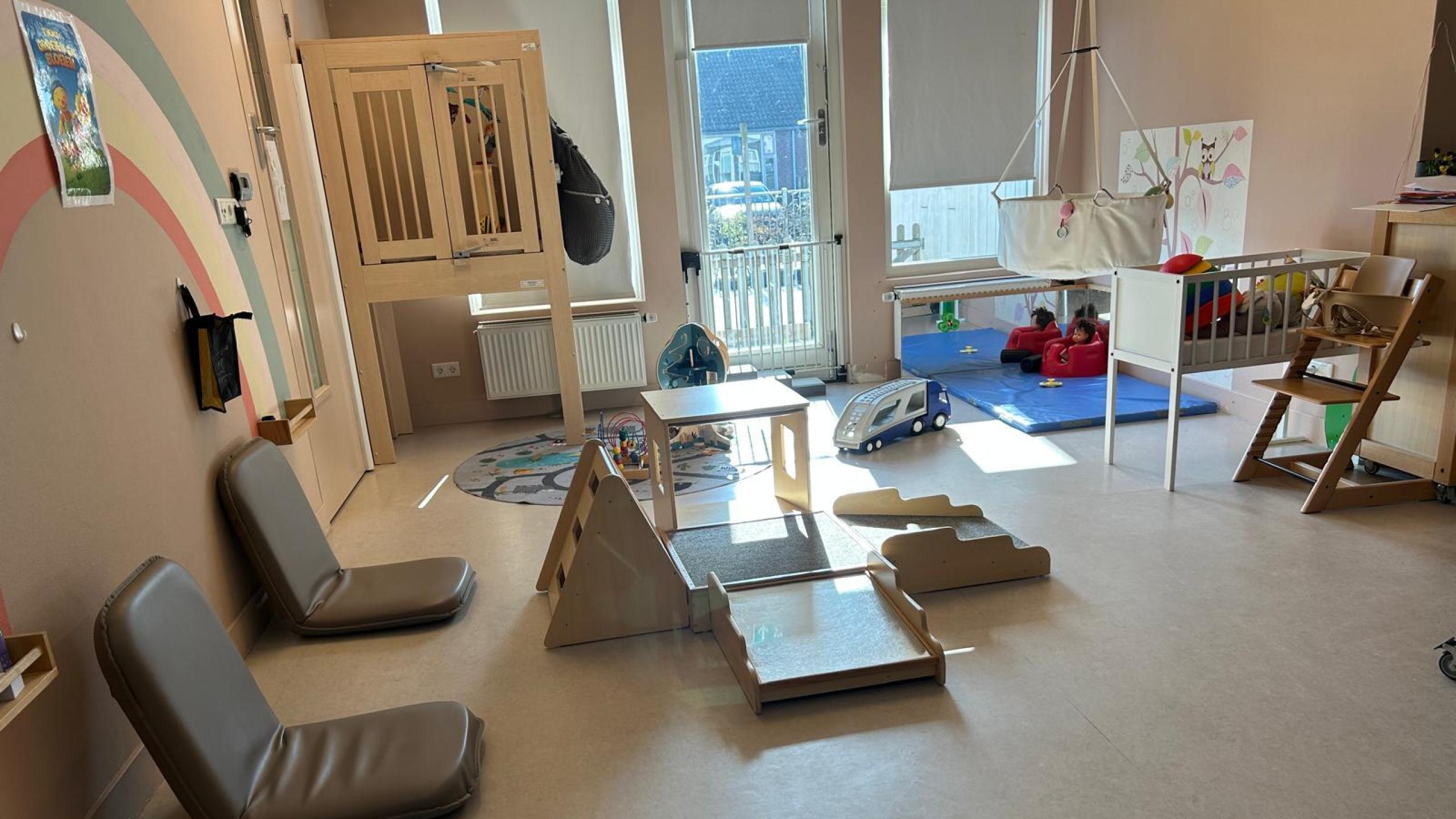 We bieden een veilige en vertrouwde omgeving waarin kinderen spelenderwijs worden gestimuleerd in hun ontwikkeling. Door open kasten kunnen zij zelf ontdekken en kiezen. Met klauterkussens oefenen ze hun motorische vaardigheden, en voor de allerkleinsten zijn er hoge boxen om rustig te observeren.